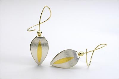 Keum-boo is a beautiful and cost effective technique used to bond pure gold and silver to the surface of jewelry and hollowware. In this workshop you will learn all the basics: rolling your own 24k gold or fine silver foil, applying it to three dimensional, flat, and textured metal surfaces, and techniques for finishing. Jayne will be demonstrating unique ways she has developed to use the technique in production as well as one-of-a-kind work in silver and 18k gold. Students will be creating samples in class and may bring finished pieces (with stones unset) in sterling, fine silver, argentium, 18k Royal Yellow Gold and 18k Palladium White Gold (both from Hoover and Strong) to embellish as well.