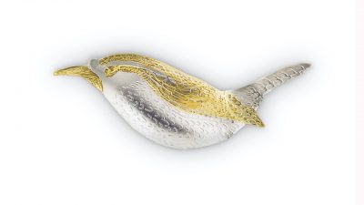 Jayne Redman is known for her unusual way of working with metal in three dimensions, often using multiples of the same shape to convey a single idea. Using nature as her inspiration she considers combinations of form and function, integrating mechanics with design and applying innovative engineering methods. She has perfected the process of quickly duplicating shapes by cutting them out with blanking dies and then forming those shapes with tools and jigs of her invention.